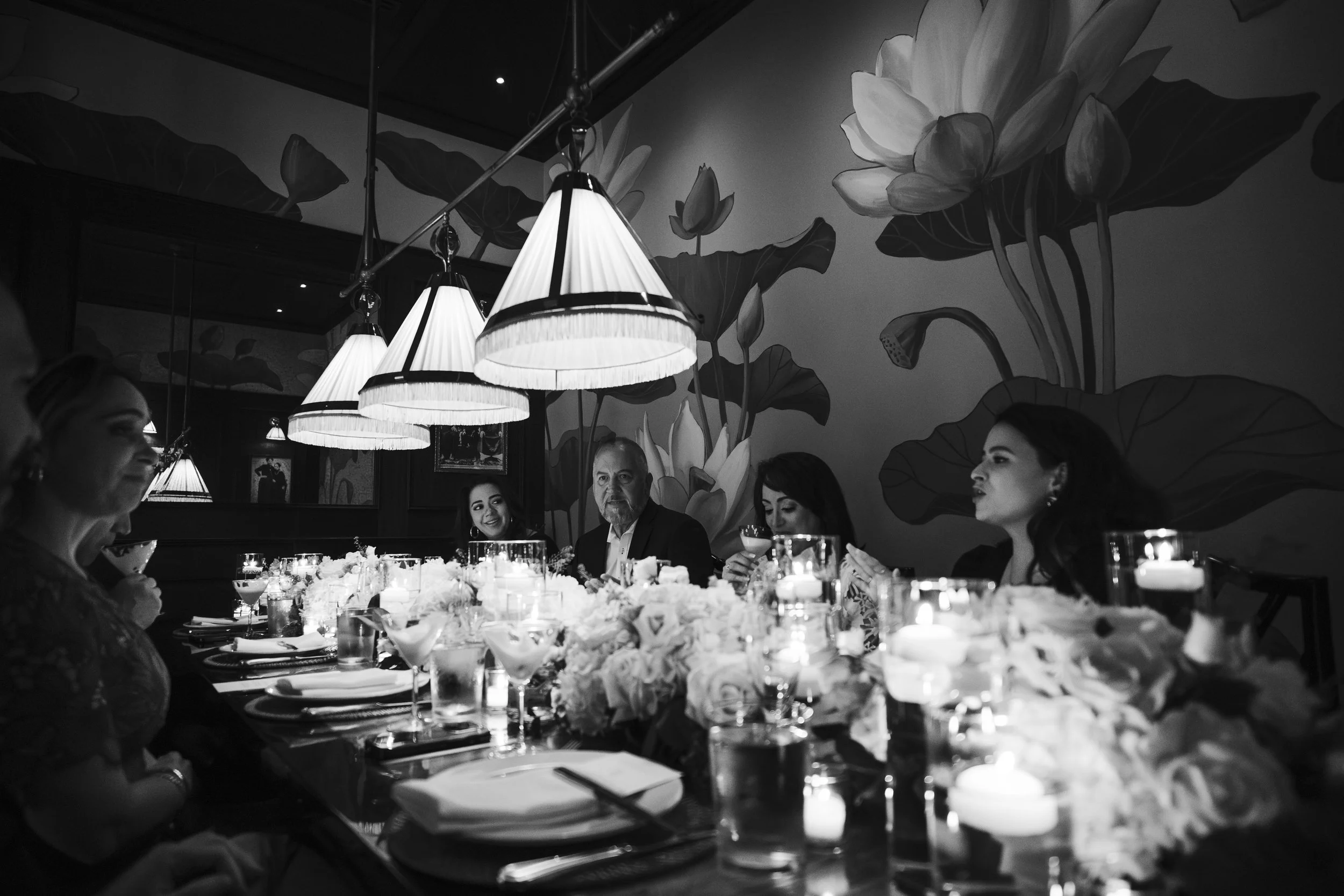 The ambiance was both elegant and personal, with custom monogrammed chopsticks and beautifully designed menus featuring the family logo, adding a unique and meaningful touch to the evening. These thoughtful details not only enhanced the aesthetic but also served as a testament to the couple's deep connection and the life they have built together.